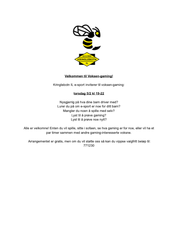 Kringlebotn IL e-sport inviterer til voksen-gaming